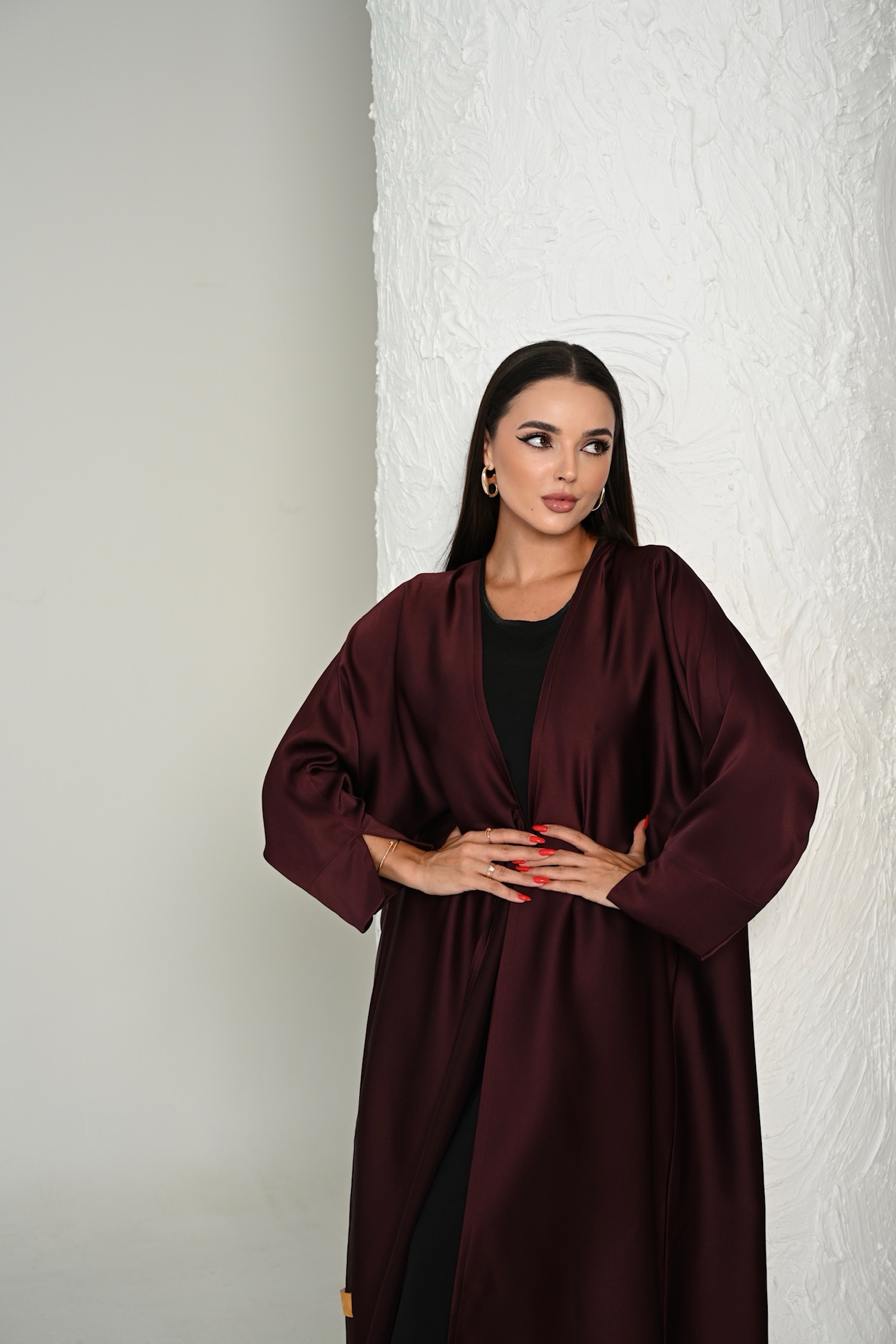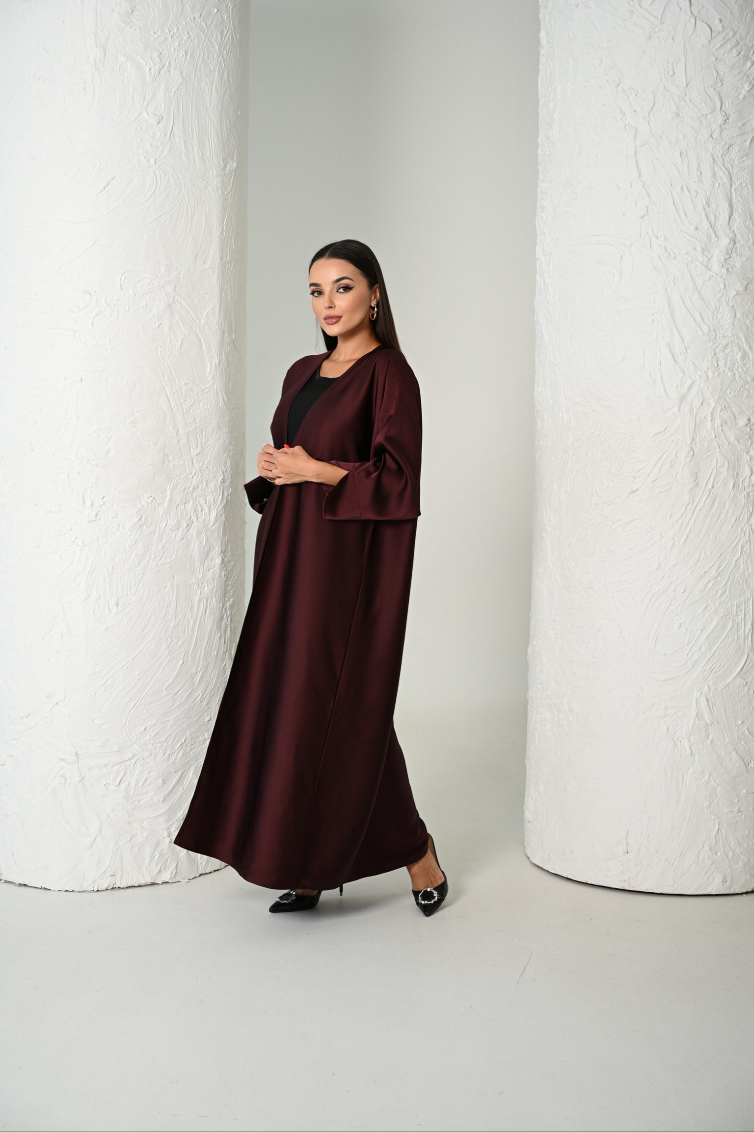 Elevate your wardrobe with the Nova Abaya in a deep, luxurious maroon color that embodies serenity, sophistication, and strength. Designed for the modern woman who values both grace and comfort, Nova blends timeless modesty with a refined, contemporary silhouette.